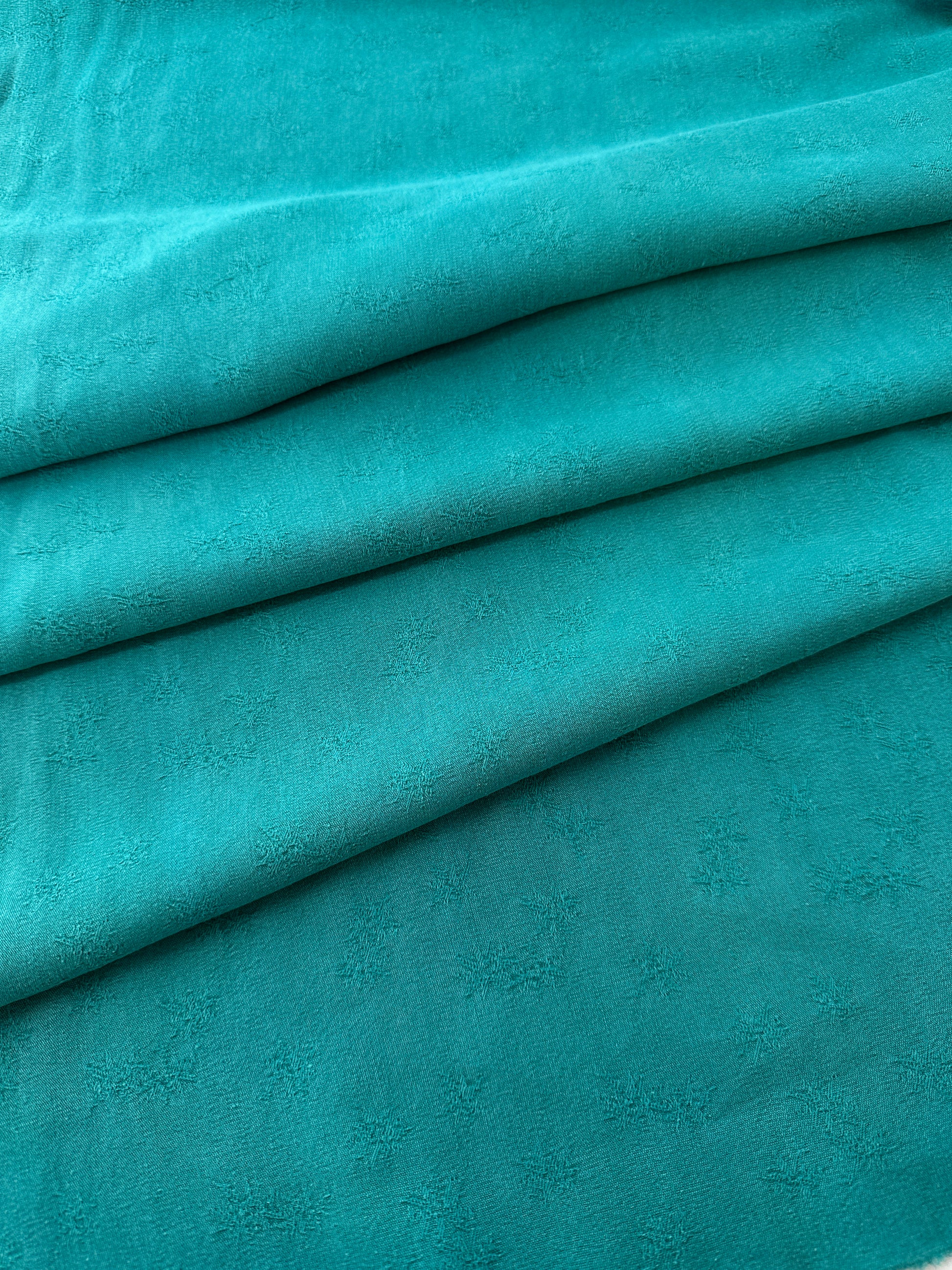 This drapey fabric has a scattered tonal floral weave, in a lovely rich shade of teal. It would be great in flowing pants or a soft shirt.