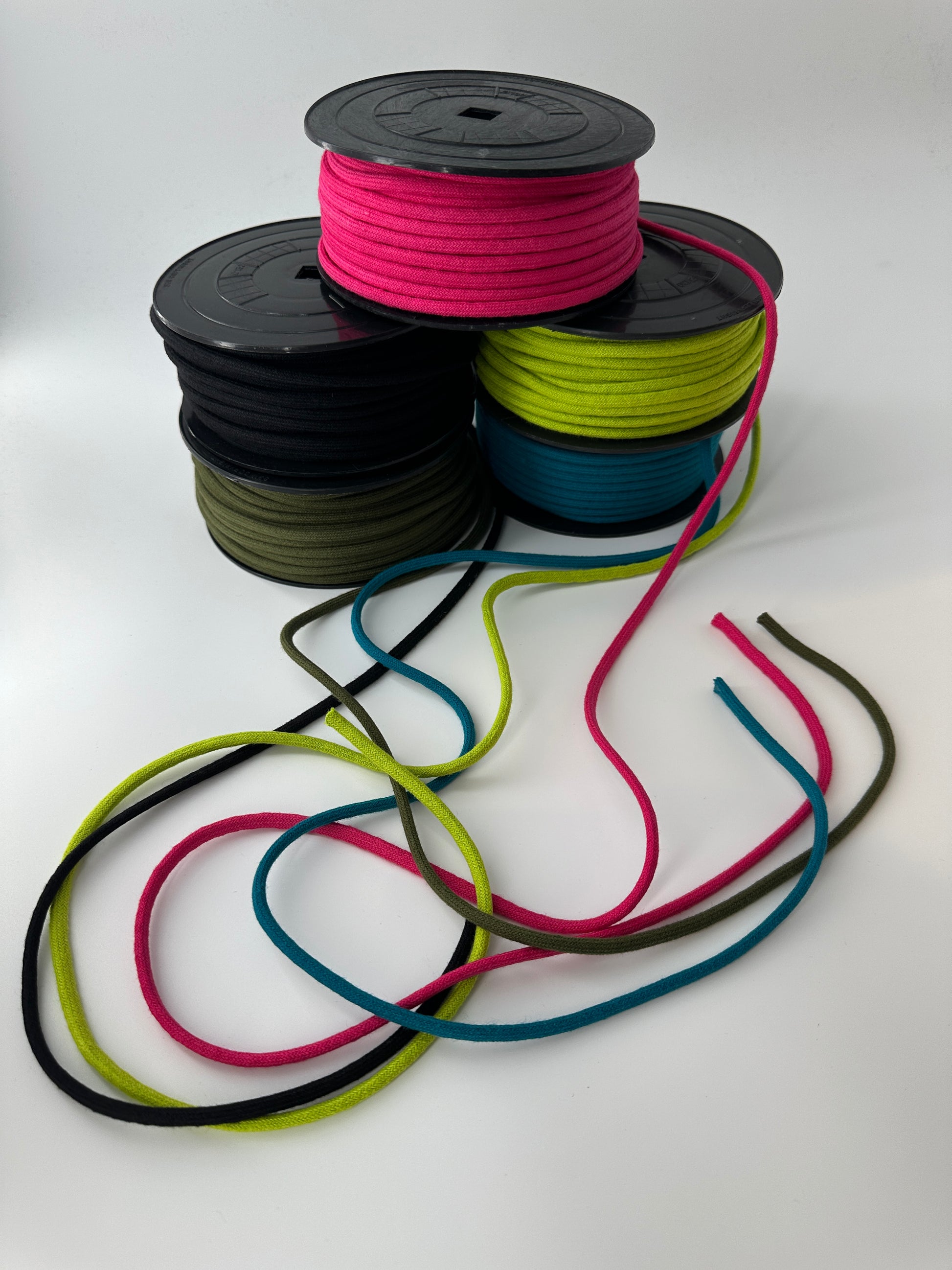 This 1/4" cord can be used for drawstrings on bags, pants, and sweatshirts or to embellish dresses and shirts
