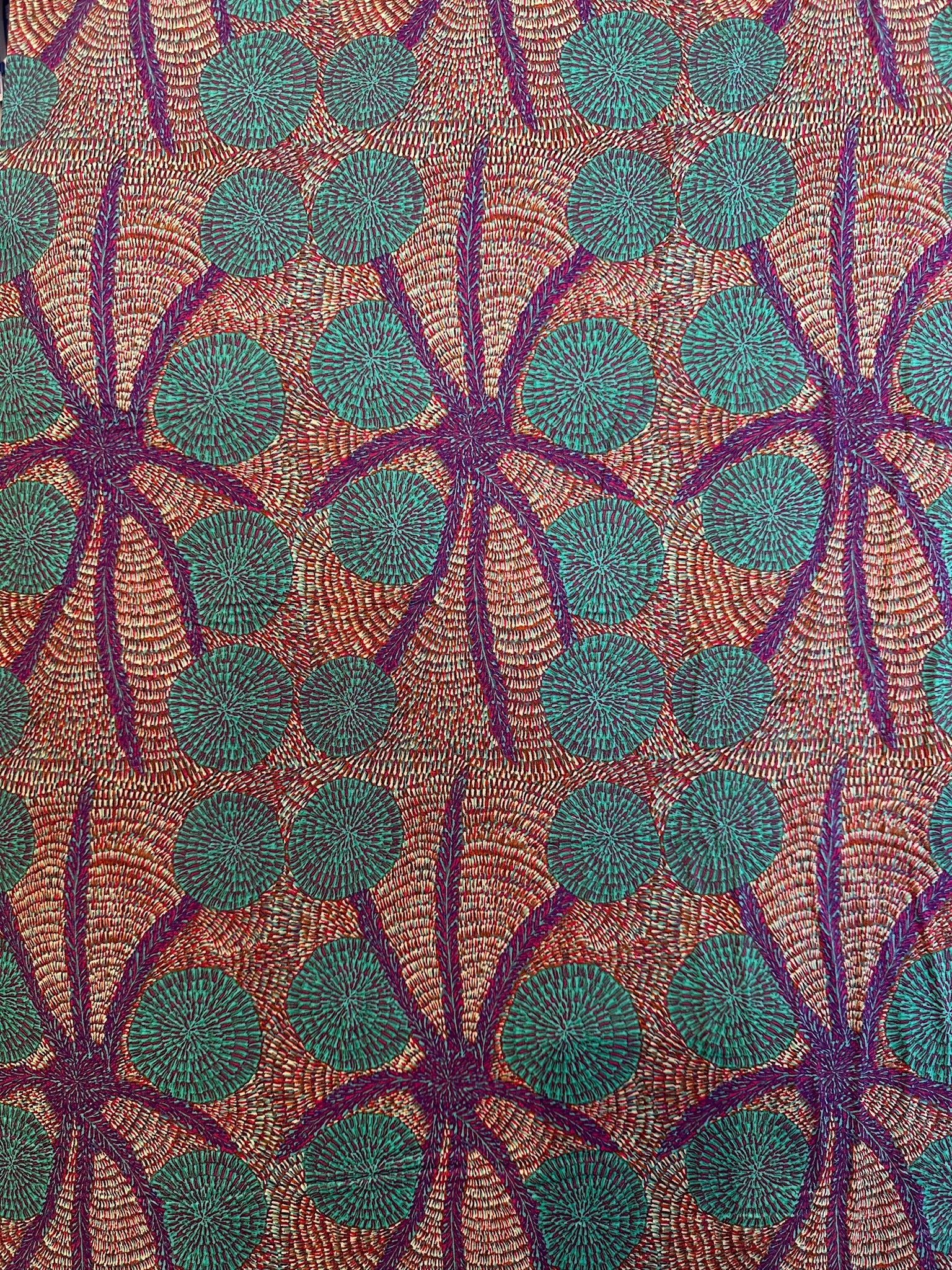Cotton Sheeting, Aboriginal Prints, Bush Medicine with Long Stripes, Purple