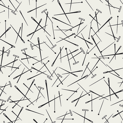 These whimsical prints celebrate the makers. The ivory ground features various pins, the dark gray ground is a snaking zipper closure. Soft to touch, lightweight and great for shirts, pajamas, kerchiefs - you name it!