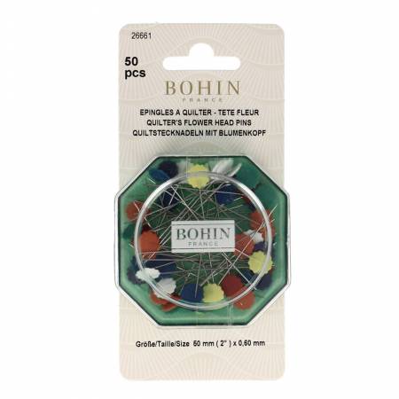 These long and fine flower head pins made by Bohin of France are great for quilters, sewers and crafters. Made with an extremely fine point to minimize holes, they are also heat resistant and durable.