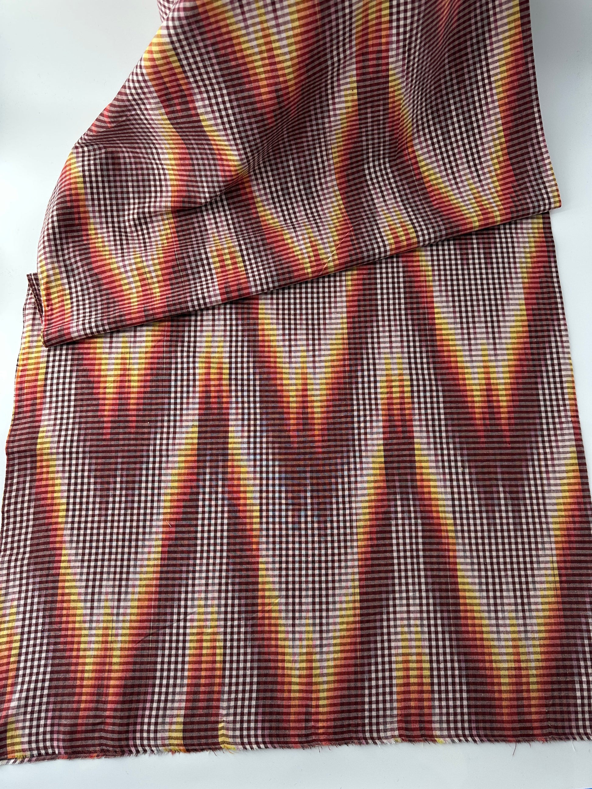 This mid-weight ikat is made by artisans in India on small looms. Slight imperfections and thick and thin yarns are part of the beauty of this handwoven fabric. It is the ideal weight for dresses and shirts