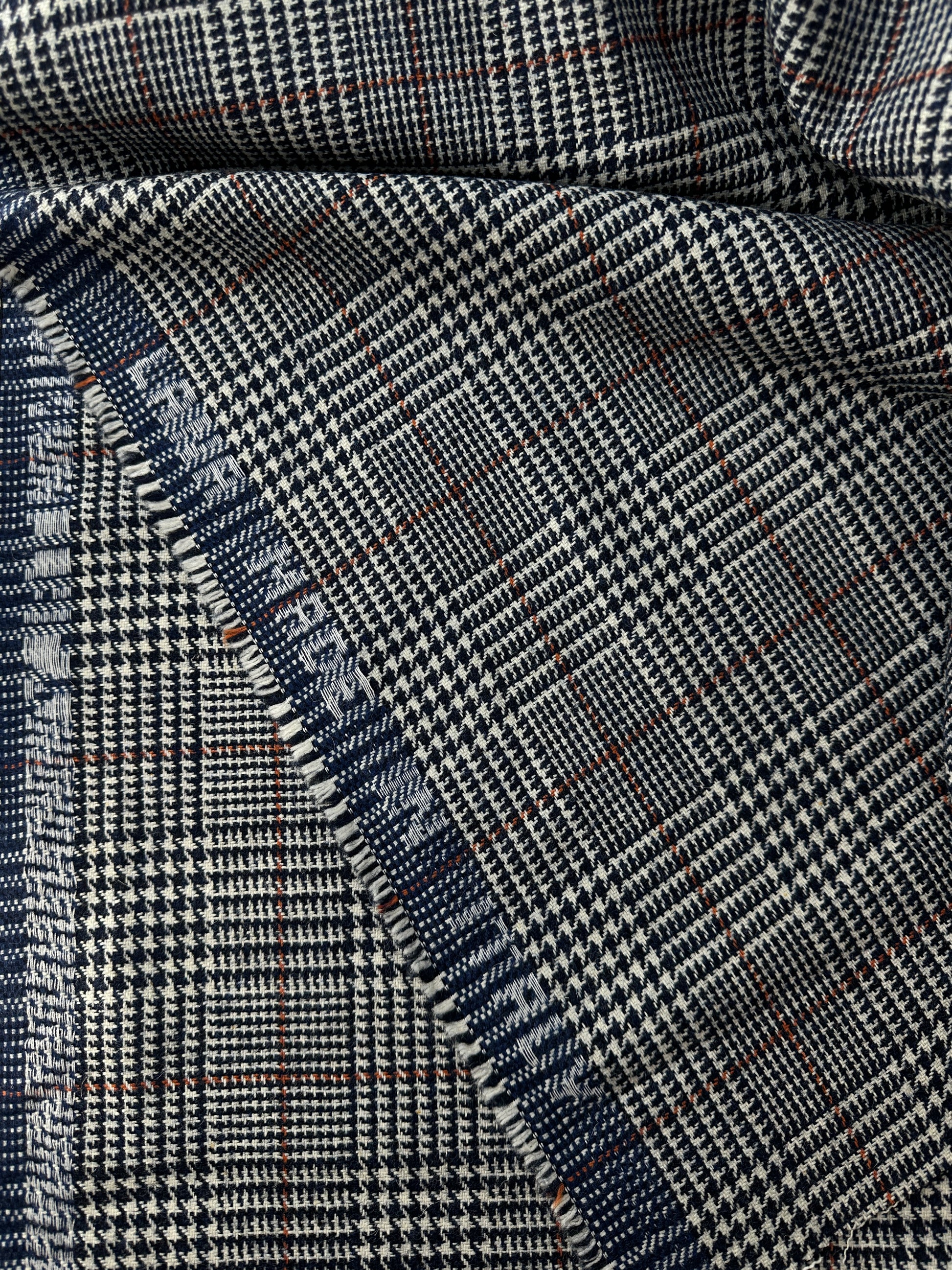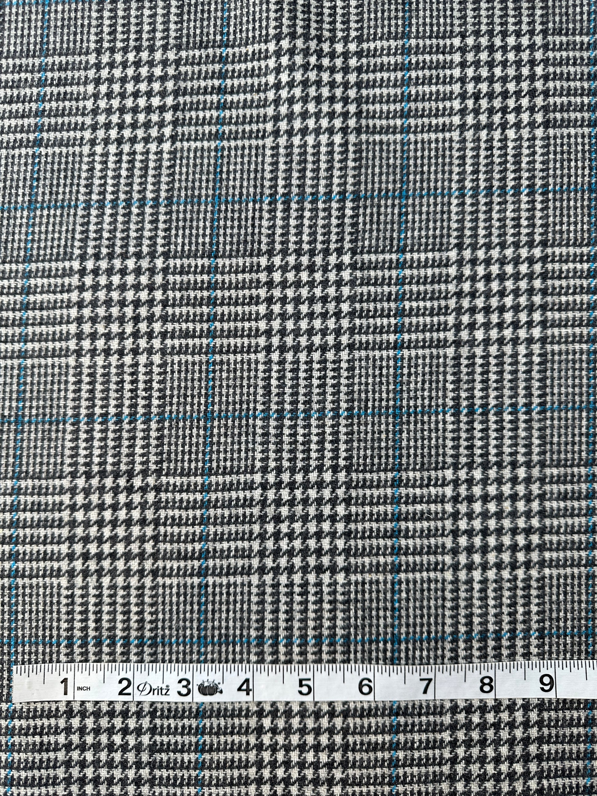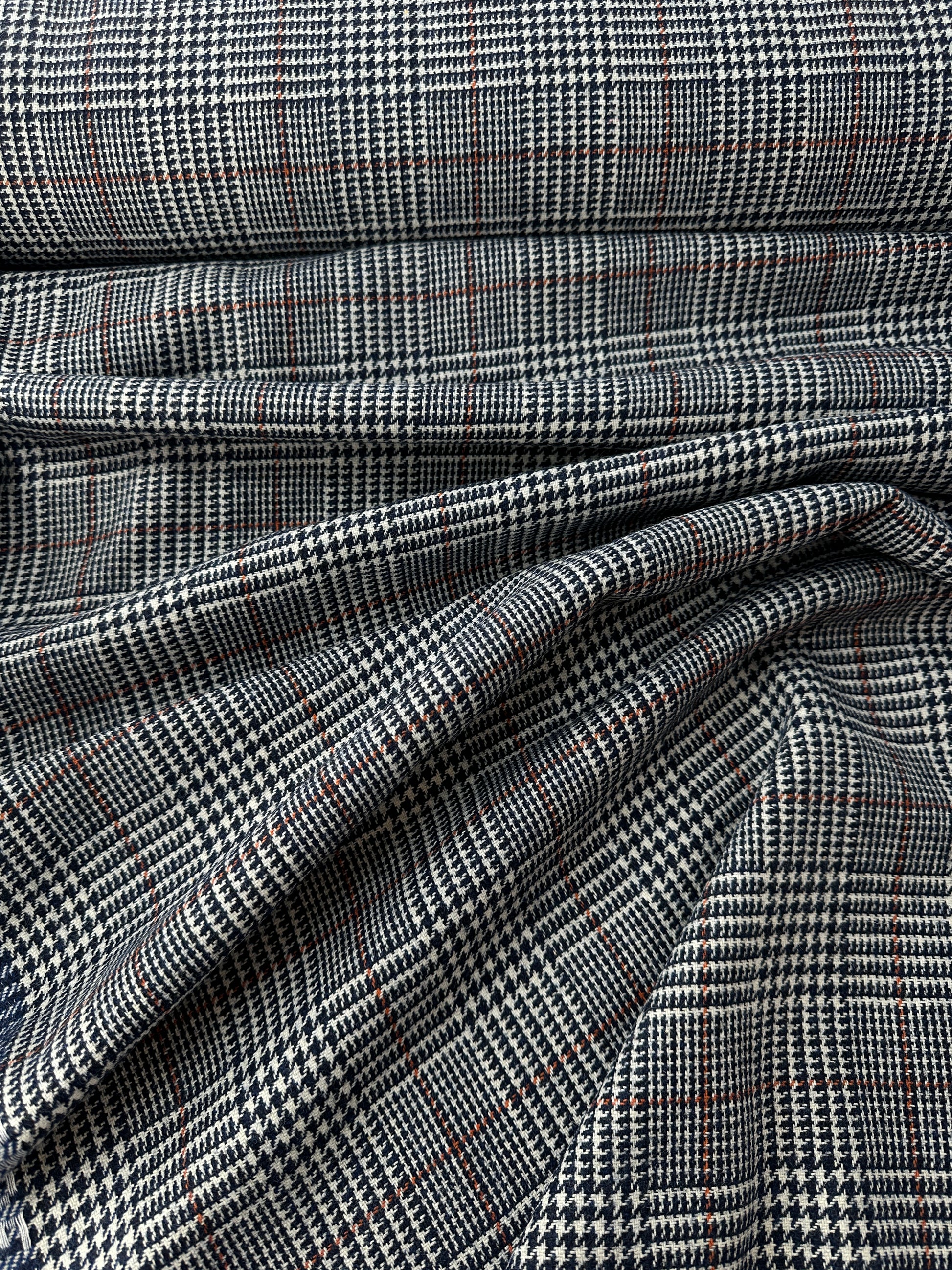 This beautiful yarn dye wool is in the Prince of Wales check pattern. It is medium weight and will make a beautiful lined dress, skirt or jacket.