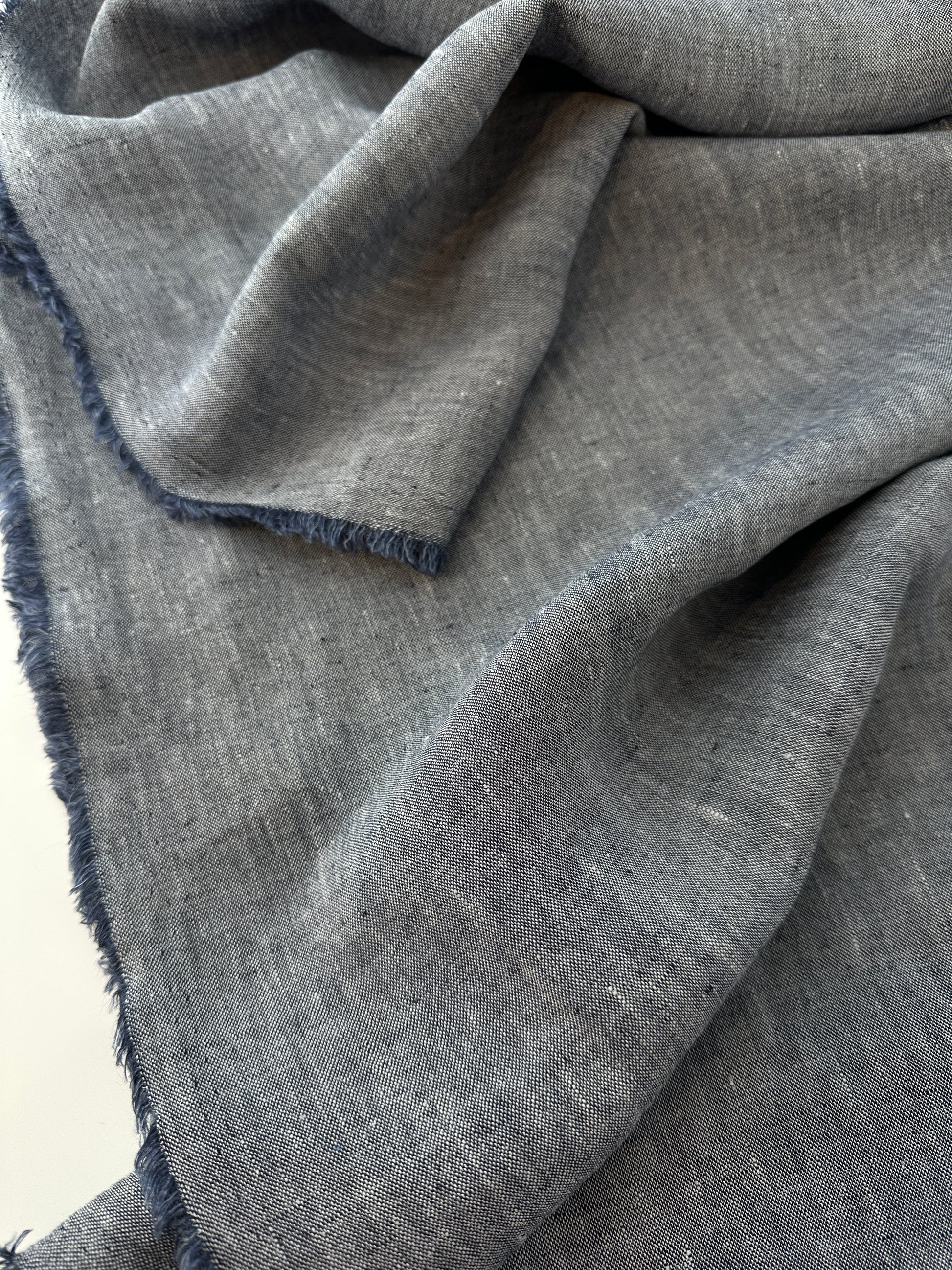Medium weight, perfect for shirts, dresses, and wide leg trousers. Colors black and blue are solid dye, color navy is a cross-dye, 6 oz