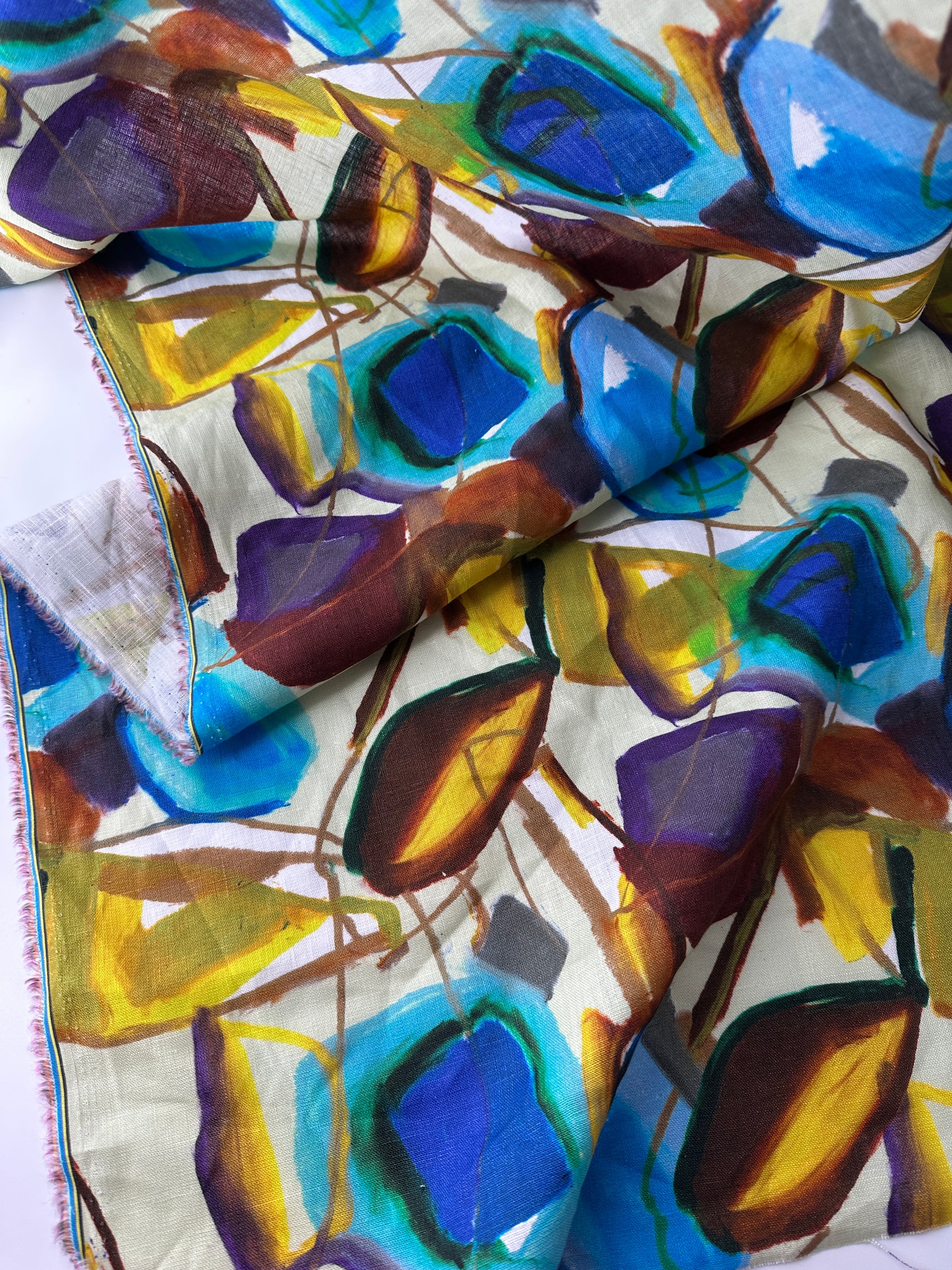 This vibrant print is on 100% Linen, which is cool to the touch and comfortable even in the hottest weather. Perfect for shirts, pants, and skirts