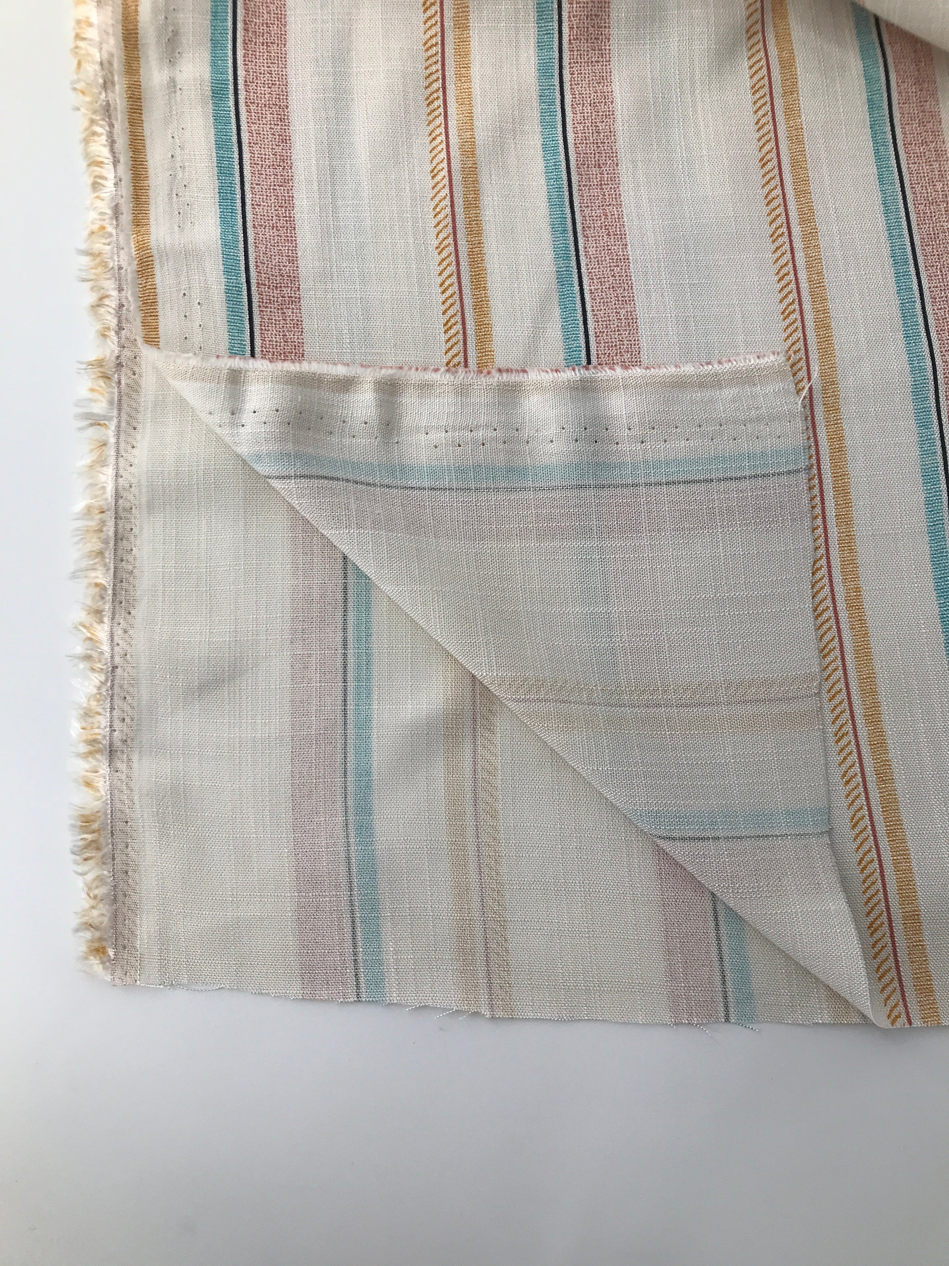 Warm tones with a bit of aqua blue cover this striking print. Lightweight and drapey, it will make an easy flowing garment
