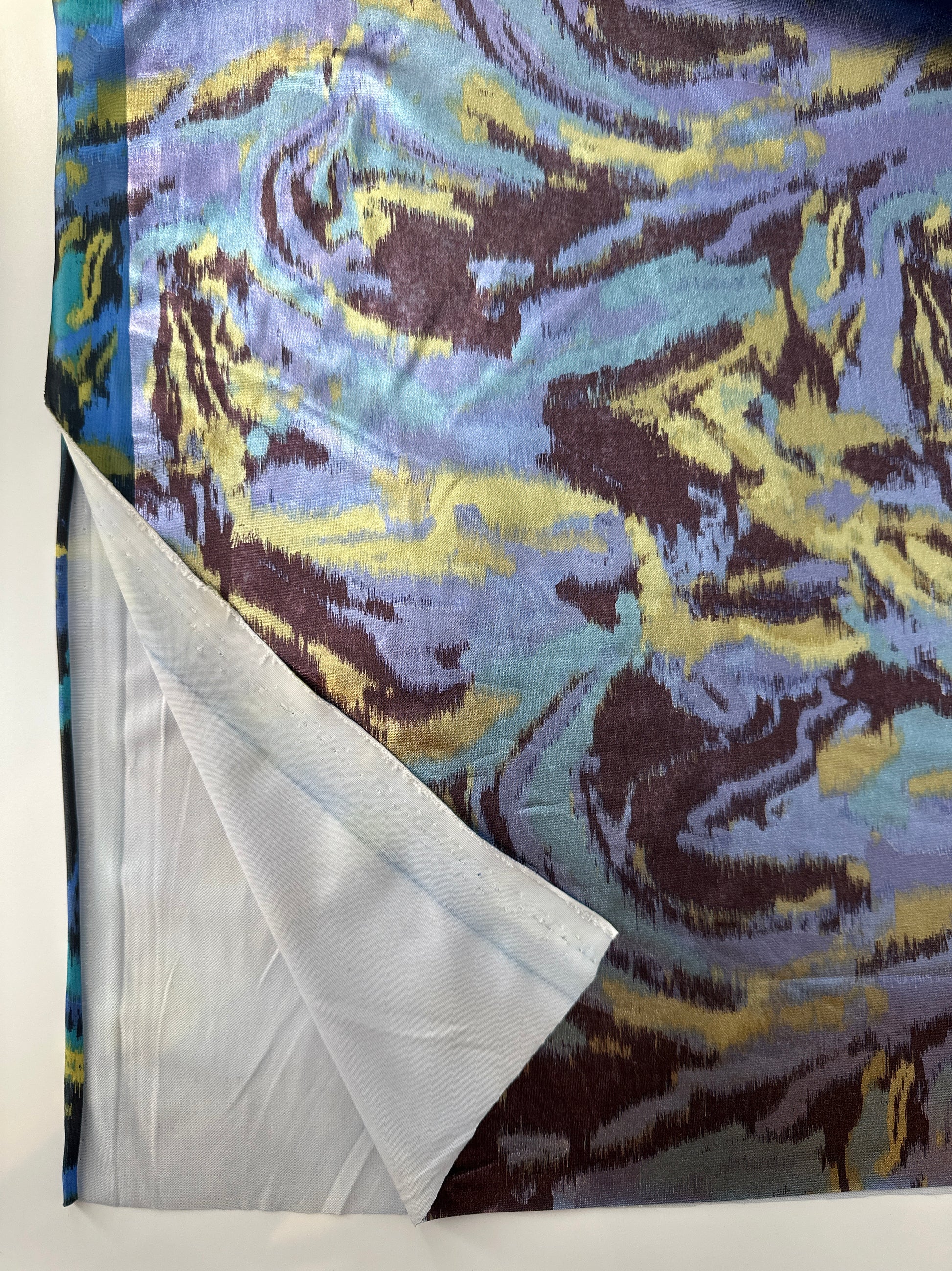 Polyester/Spandex Knit, Marble Foil Print, Lavender/Gold/Brown/Blue