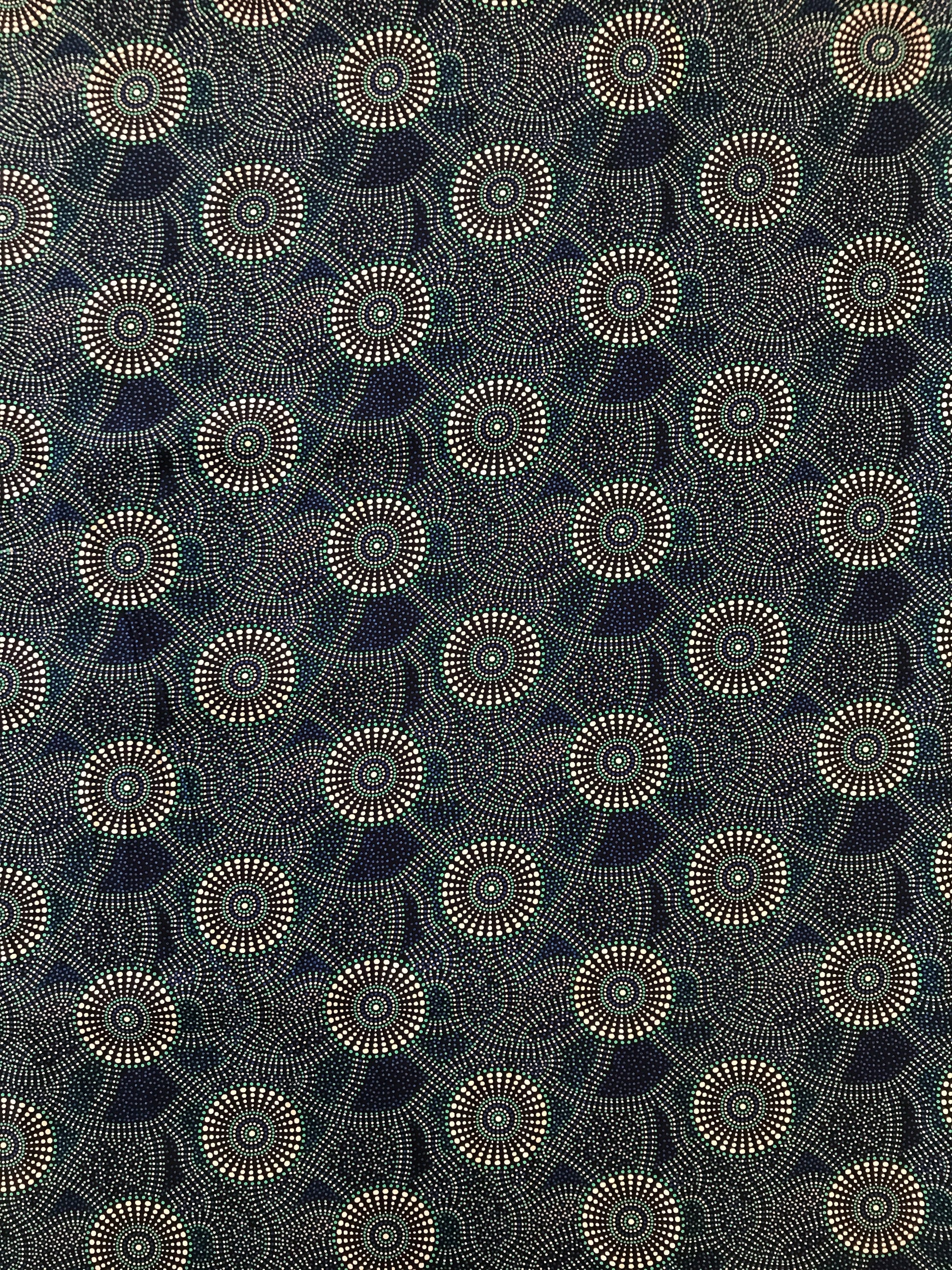 Rayon, Aboriginal Print, Kangaroo Path 2, Blue