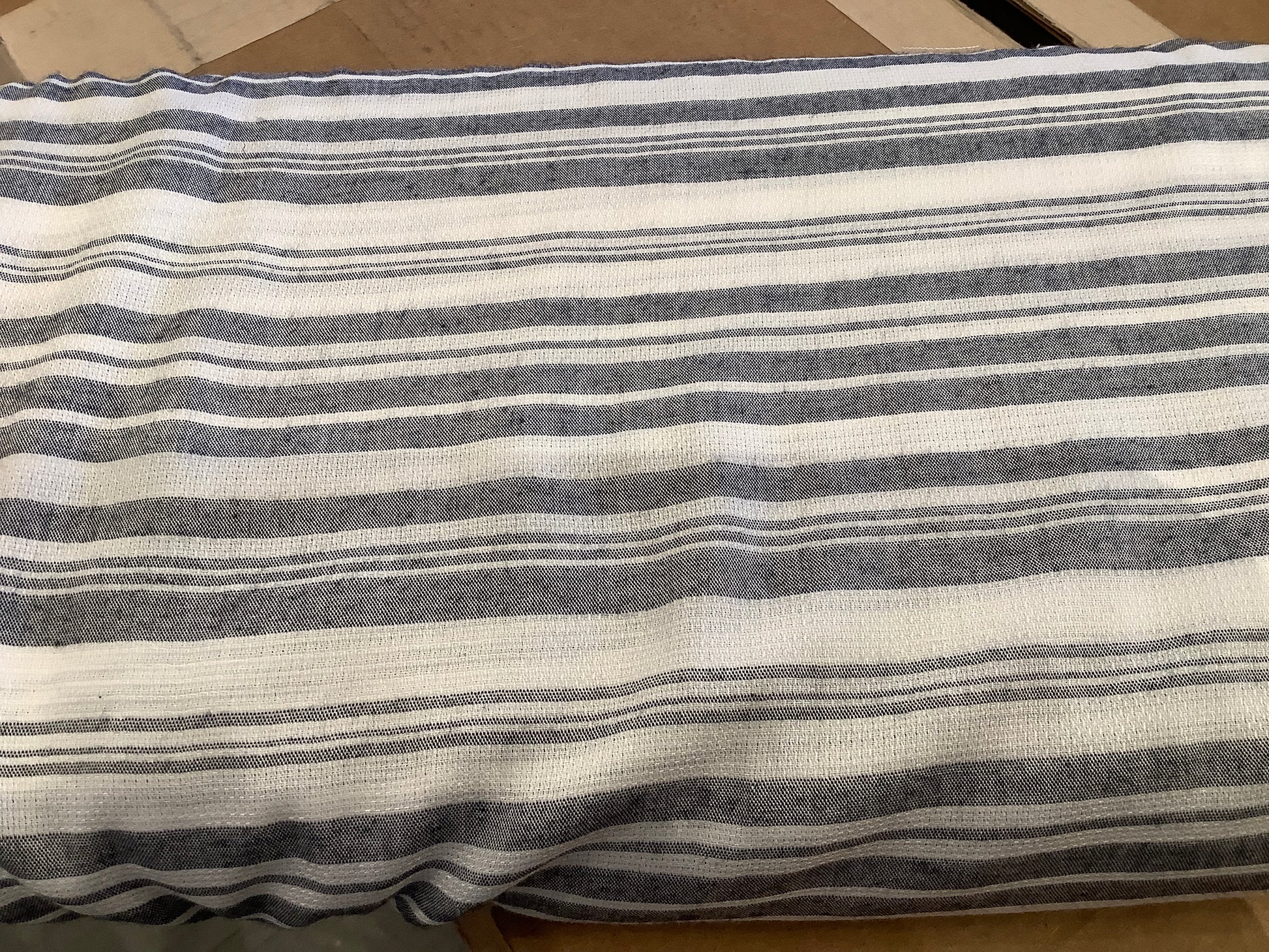 This yarn-dye stripe has lightweight texture with white and black yarns in 1/2"-3/4" wide stripes. Great drape for shirts and blouses, and casual pants