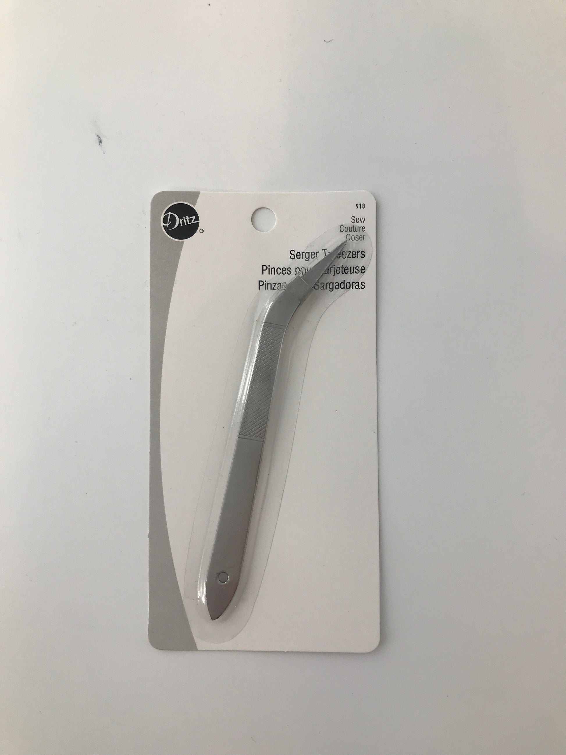 Use tweezers as you thread overlock machines. Angled end on tweezers helps reach into areas with limited space or restricted access. Includes 1 Pair of metal Serger Tweezers