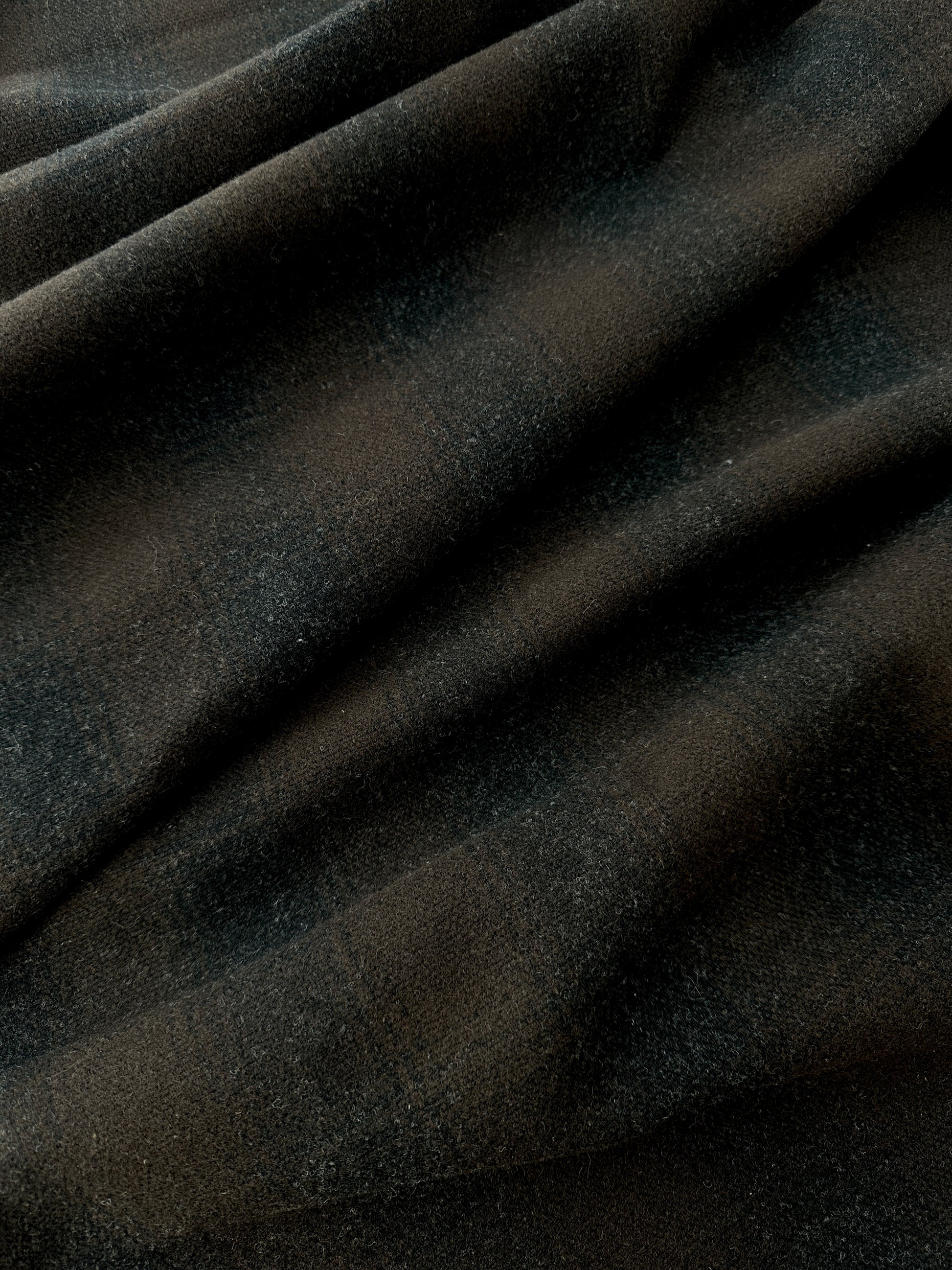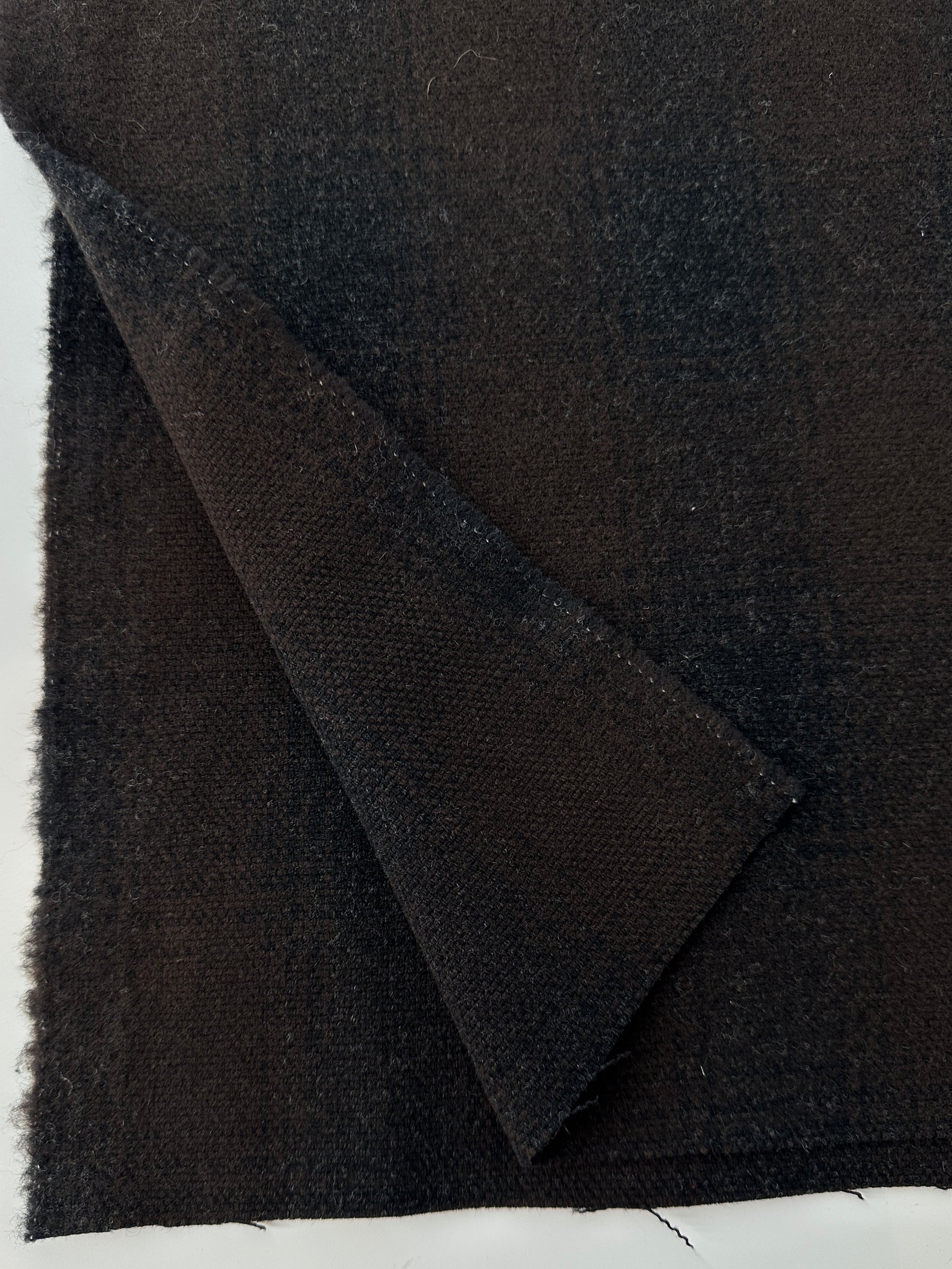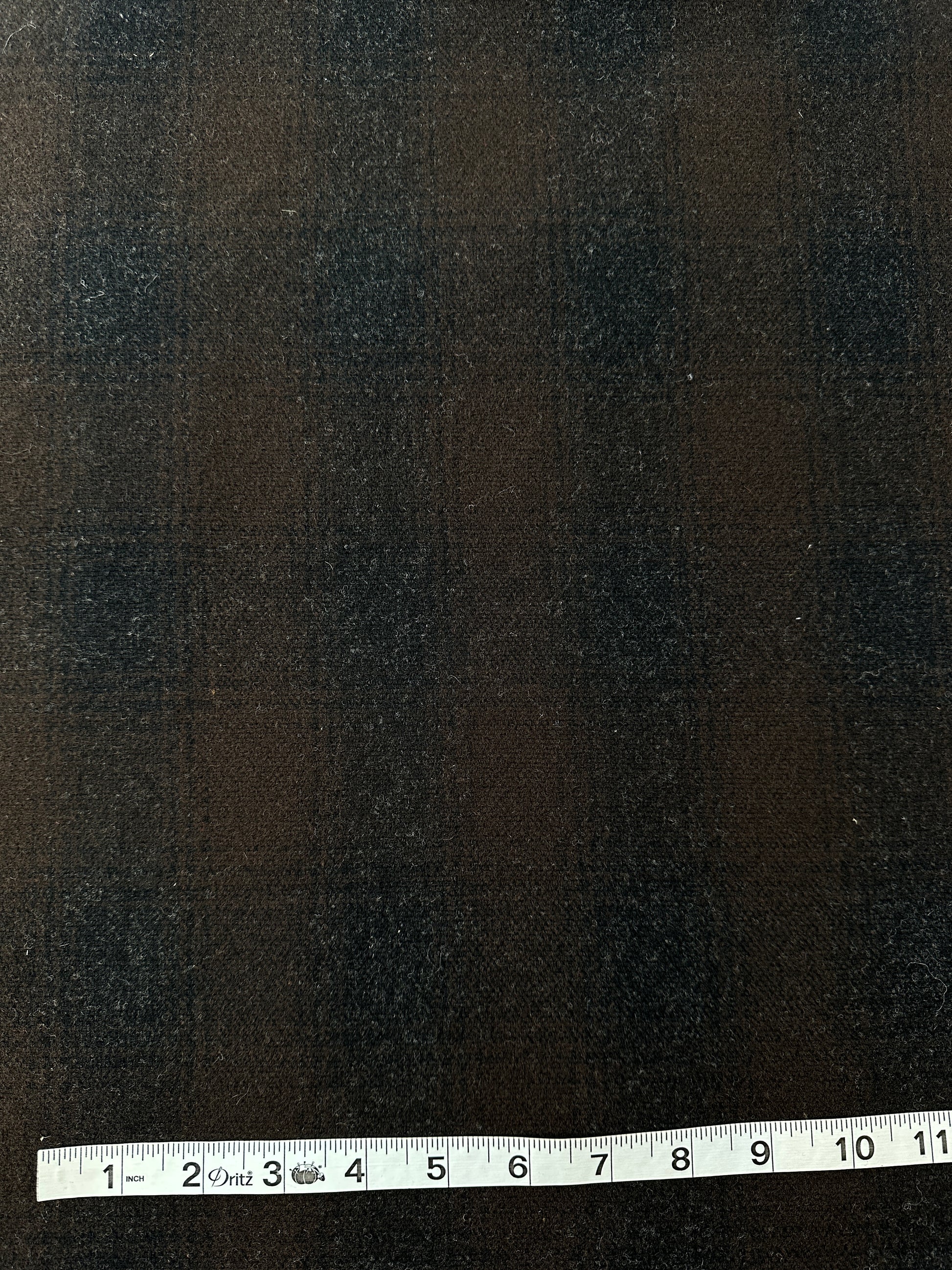 This substantial fabric is a mix of charcoal gray and brown yarns, woven in a subtle box plaid. The weight will wok for outerwear coats and jackets, but would also make a nice blanket