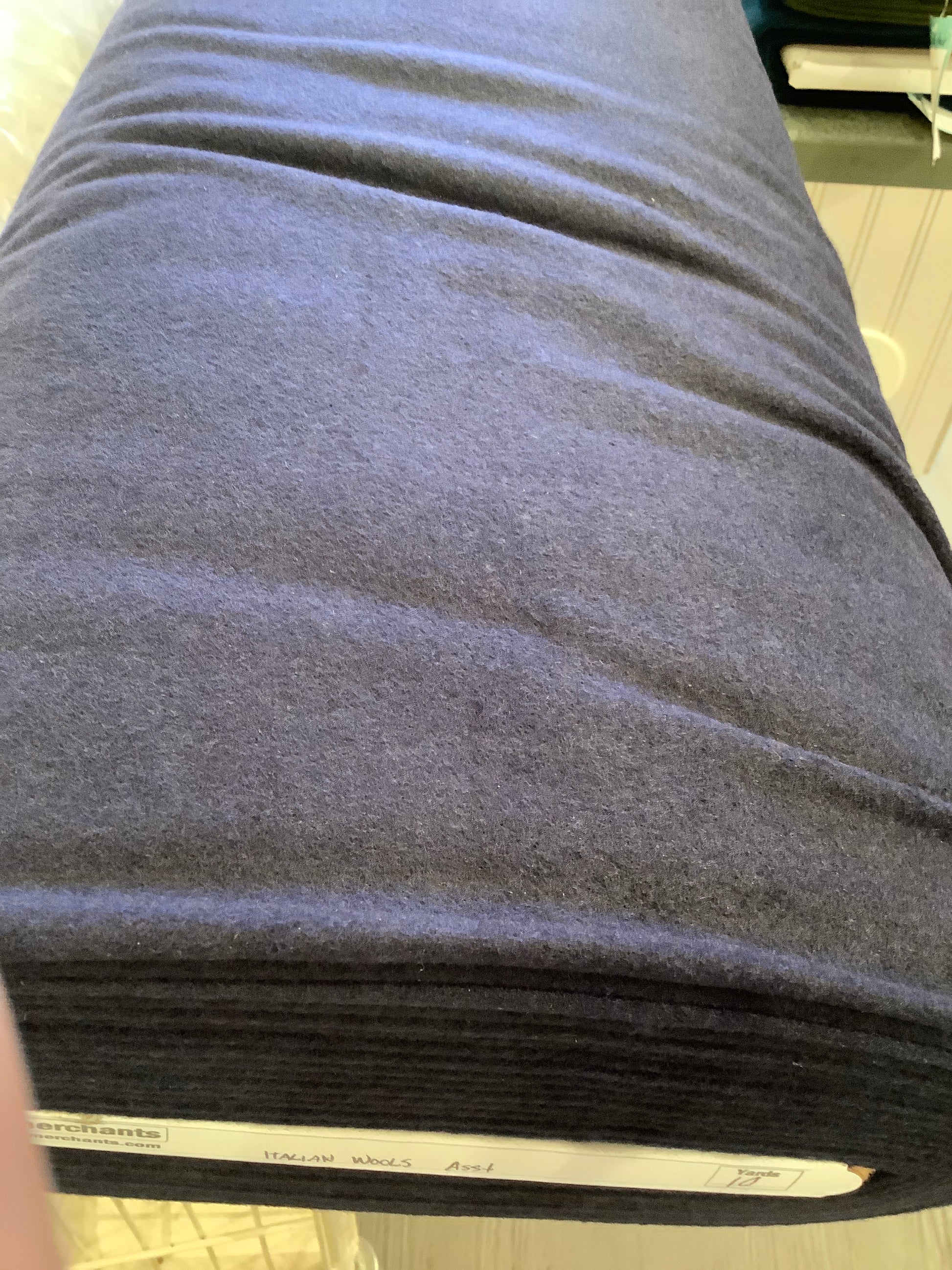 Italian wool, medium weight, soft hand. Great alternative for those who can’t wear black and want a timeless addition to your wardrobe. Feels great!