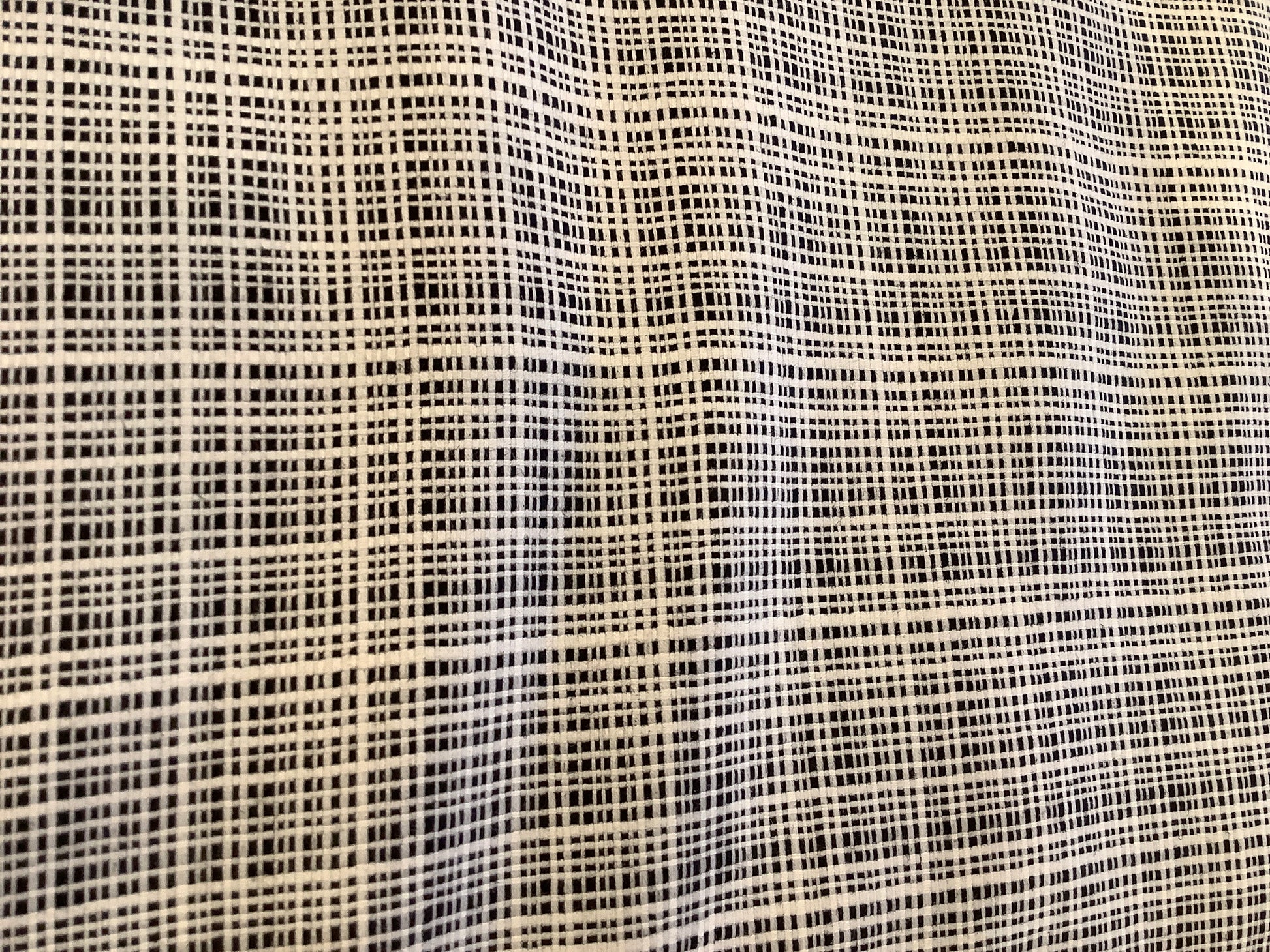 Striking black and white wool/poly blend in a suiting weight. Varying yarn sizes of both fibers in warp and weft, creating a very tiny check. Great drapeability