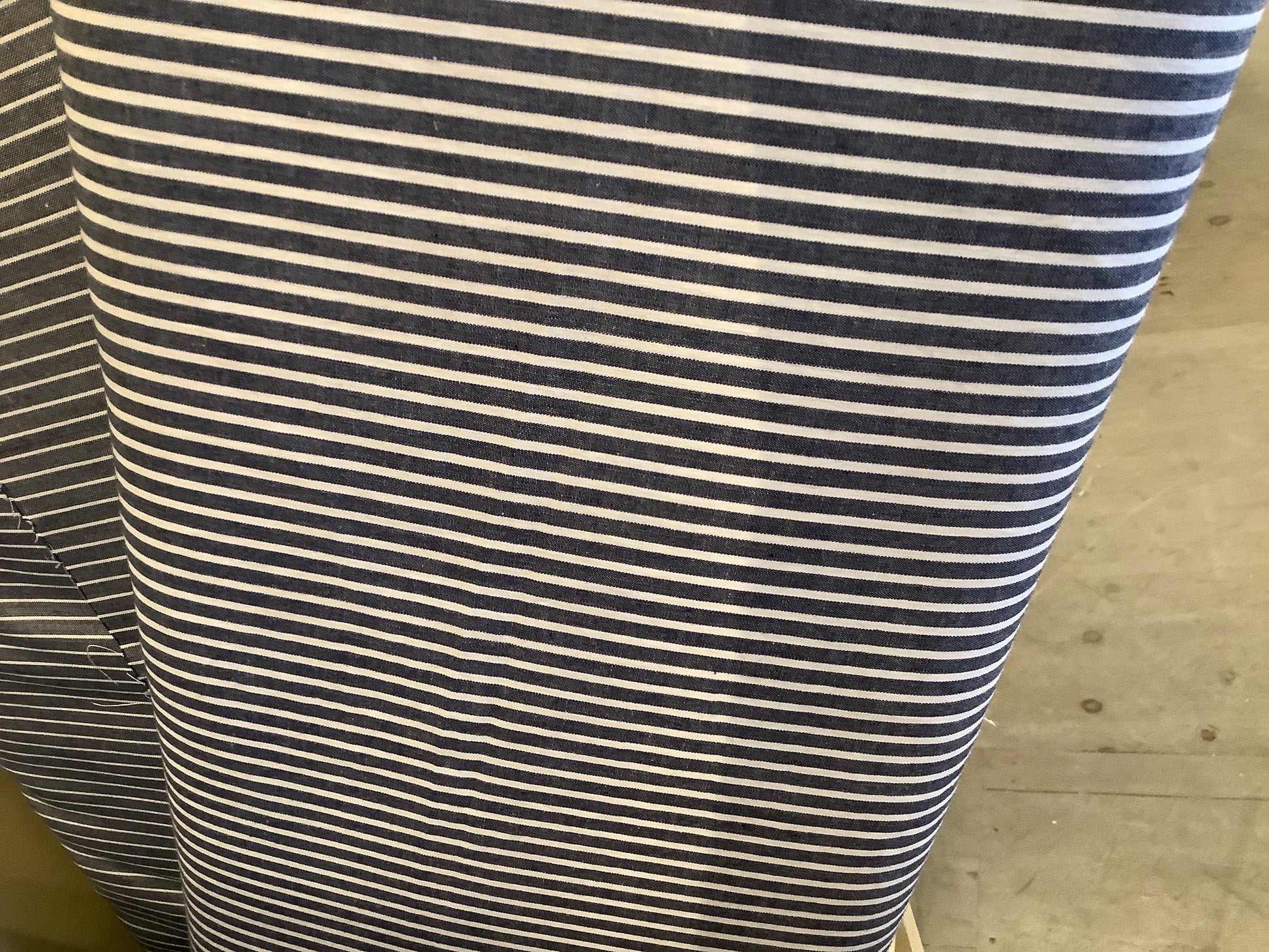 This lightweight fabric in a blue and white 1/4" stripe has a smooth hand and light drape, perfect for shirts and blouses